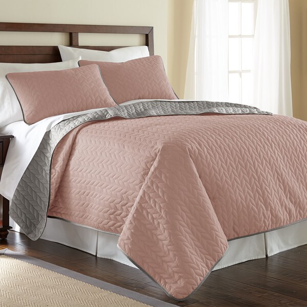 3-Piece solid reversible coverlet set leaf Pink/Silver King (Discontinued)