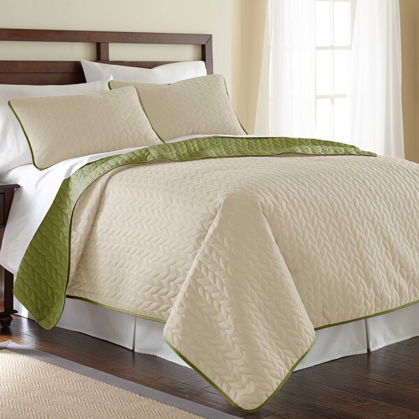 3-Piece solid reversible coverlet set leaf Sand/Olive green King (Discontinued)