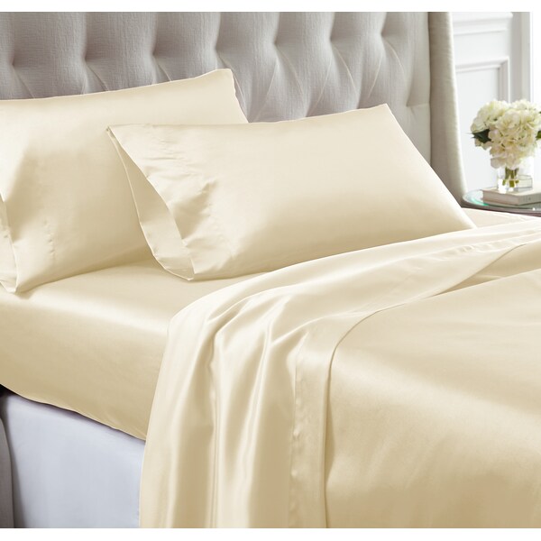 4 piece solid satin sheet set Ivory Cal. King (Discontinued)