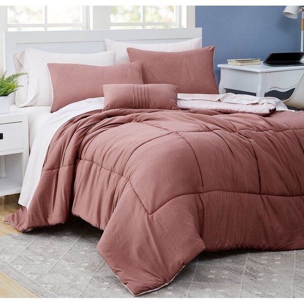 6-Piece Garment washed complete bed set Rosewood/Rose smoke Twin (Discontinued)