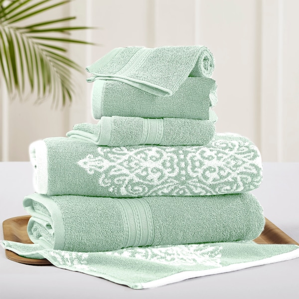 6 Piece reversible yarn dyed jacquard towel set Artesia Damask Sage (Discontinued)