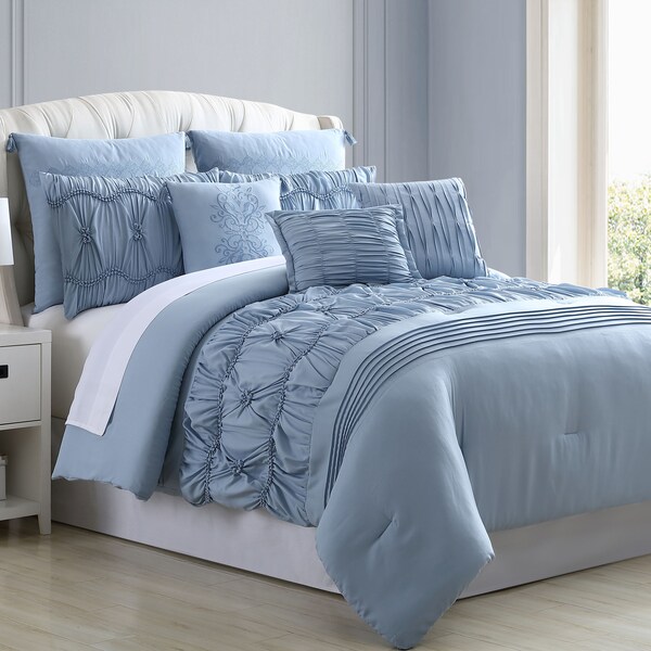 Indulge yourself in spa-like luxury with this 8-Piece Comforter Set. The polyester filling gives just the right fluffiness to this comforter set while the bar tacking details give a more formal finished look. Our luxuriously silky brushed microfiber material is constructed using techniques that include better stitching, stronger weaving, and softer materials; Ensuring a durable and soft touch. Fashion meets luxury with this set and is the perfect solution to your decorative and comfort needs.