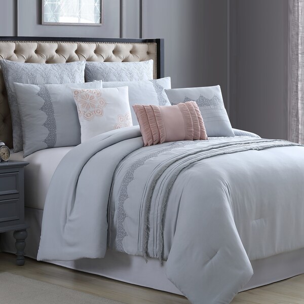 Indulge yourself in spa-like luxury with this 8-Piece Comforter Set. The polyester filling gives just the right fluffiness to this comforter set while the bar tacking details give a more formal finished look. Our luxuriously silky brushed microfiber material is constructed using techniques that include better stitching, stronger weaving, and softer materials; Ensuring a durable and soft touch. Fashion meets luxury with this set and is the perfect solution to your decorative and comfort needs.