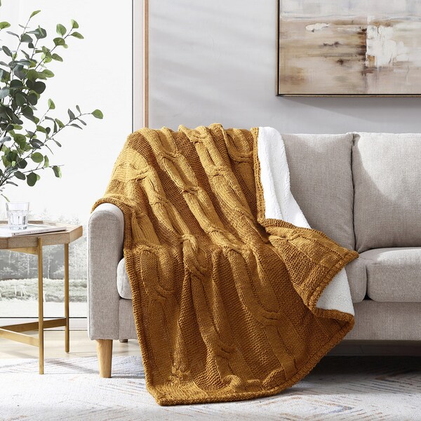 Cable knit/Sherpa throw Aspen Gold (Discontinued)