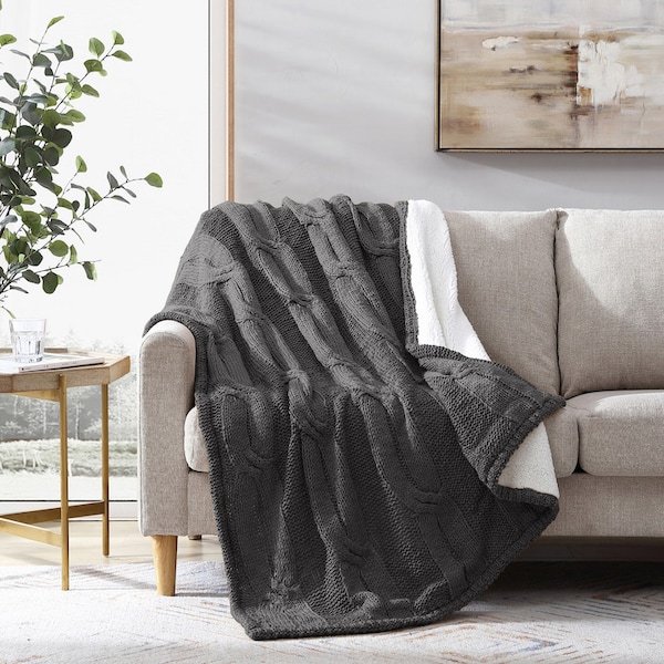 Cable knit/Sherpa throw Aspen Gray (Discontinued)