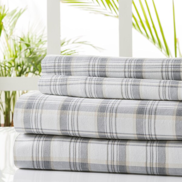 English Laundry 100% Cotton Flannel Sheet set Neutral Plaid Full (Discontinued)