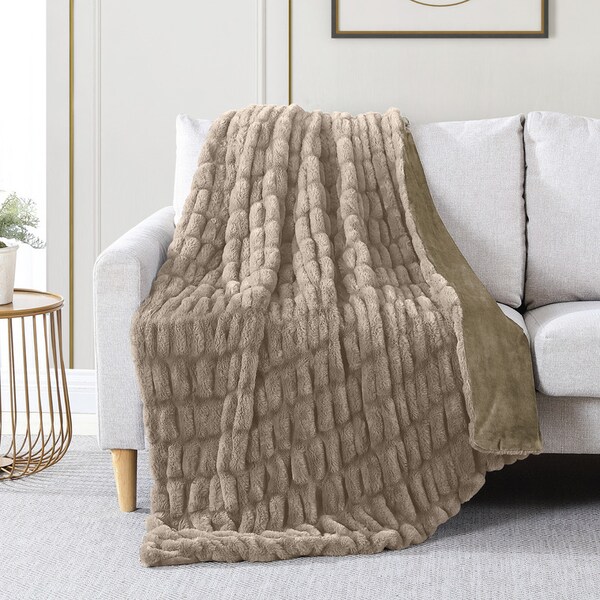 Luxury faux fur ruched throw Telluride Khaki (Discontinued)