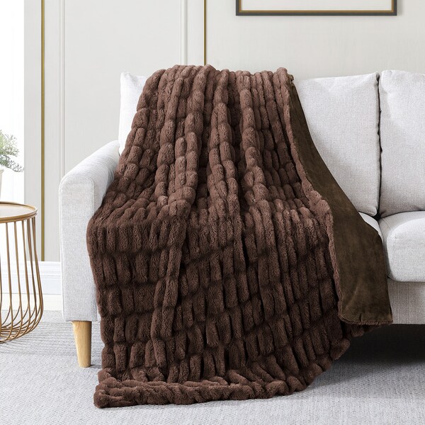 Luxury faux fur ruched throw Telluride Sable (Discontinued)