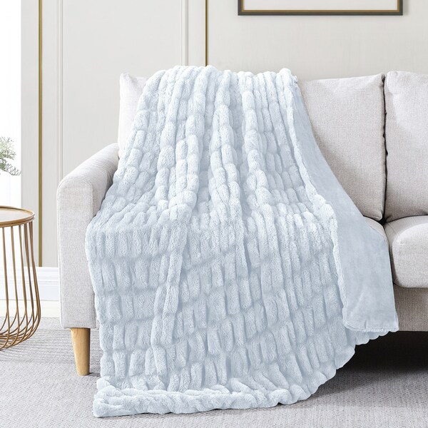 Luxury faux fur ruched throw Telluride Silver (Discontinued)