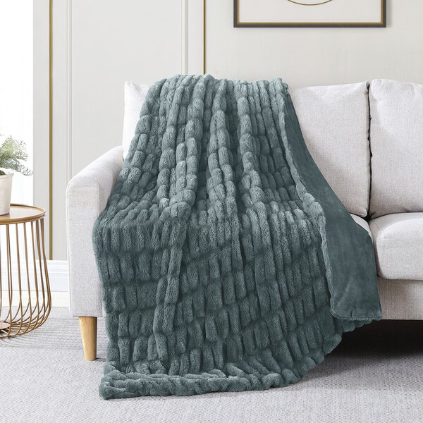 Luxury faux fur ruched throw Telluride Teal (Discontinued)
