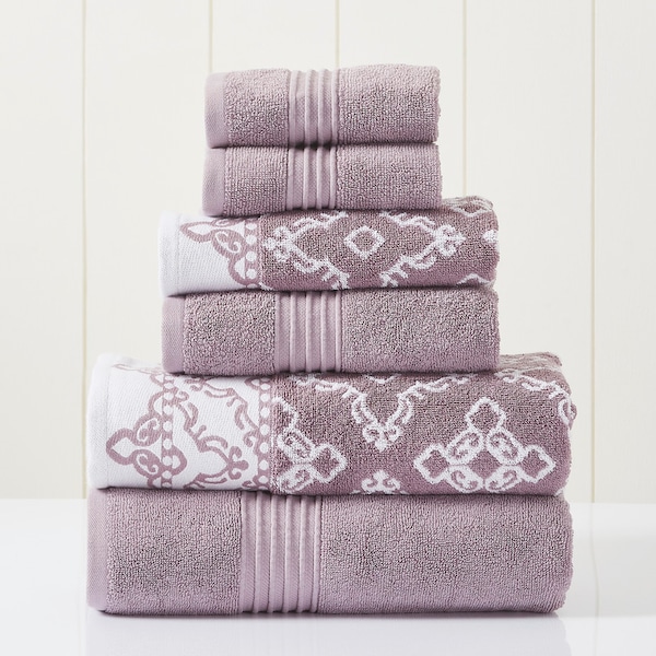 Modern Threads 6-Piece Yarn Dyed Jacquard/Solid towel set Charlize Orchid (Discontinued)