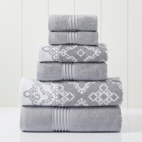 Modern Threads 6-Piece Yarn Dyed Jacquard/Solid towel set Charlize Stone (Discontinued)