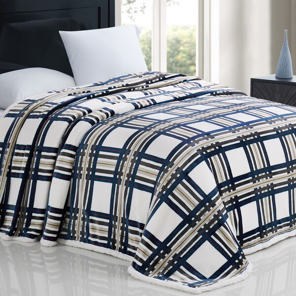 Modern Threads Printed Flannel Reversible Sherpa blanket Stein Check Full/Queen (Discontinued)