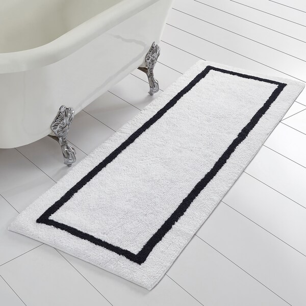 Pamper your feet by stepping out of the shower and onto luxury with the soft 100% Cotton Long Bath Rug by Amrapur Overseas. Crafted with plush cotton, each reversible 22x60 inch rug is not only comfortable to the touch, but is also absorbent and durable. This bath runner is additionally available in a variety of colors, making these stylish rugs suitable to compliment any bathroom decor.