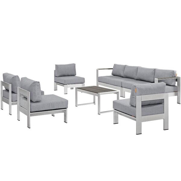Shore Outdoor Patio Sectional Sofa Set, Silver and Gray - 7 Piece (Discontinued)