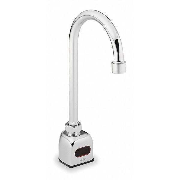 Gooseneck Bathroom Faucet, Faucet Operation Sensor, Handle Type Sensor, Connection 1/2 In. MIPS, 0.5 gpm Flow Rate, Number of Holes 1, Mounting Hole Center to Center Single Hole, Body Material Brass, Faucet Spout Rigid/Swing, ADA Compliant Yes, Drain Type None, Mounting Type Deck, Power Source Battery, Spout Length 5-3/8 In., Sensor Range Adjustable Infrared, Valve Type Solenoid, Finish Chrome, Flow Outlet Type Laminar, Includes In-Line Filter, (4) Batteries