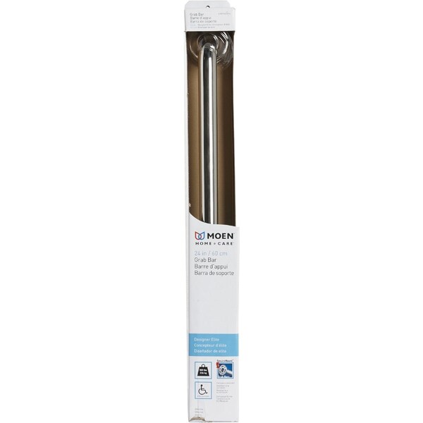 Moen Designer Grab Bars feature a sleek uncomplicated style that accents any bathroom design while creating a safer more comfortable bathroom experience. Moens SecureMount technology allows for secure and lasting installation at any angle on the wall with or without studs for more flexibility while securely supporting up to 500 Lb. These grab bars also feature finger notches on the bar providing a more stable hand placement.