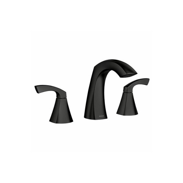 Lindor matte black twohandle high arc bathroom faucet 8 centerset Elegantly simple, the Lindor collection's graceful curves and contours flow as beautifully as the faucet's water stream, creating a Transitional style that spans a variety of decorating trends