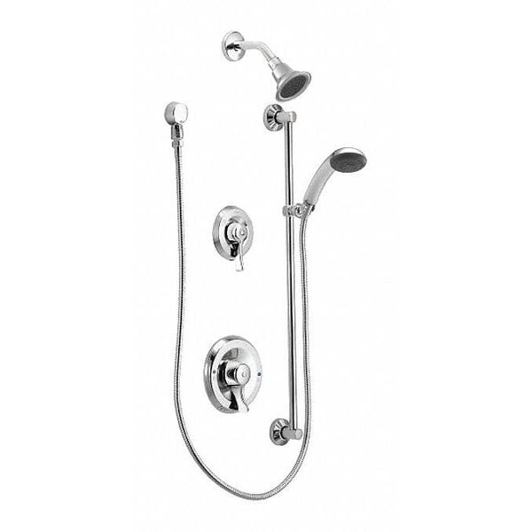 Shower Faucet, ADA Compliance Yes, CEC Compliant, Connection Size 1/2 in, NPT, Face Shape Circle, Faucet Handle Type Lever, Fixed Showerhead Flow Rate 1.5 gpm, Handheld Showerhead Flow Rate 1.5 gpm, Handheld Showerhead Width 3 3/8 in, Number of Handles 1, Moen, Commercial Series, Shower Connection Type 1/2 in NPT, Showerhead Function Single, Showerhead Material Brass, Stainless Steel, Showerhead Shape Flat Circle, Showerhead Spray Pattern Regular, Handheld, Trim Finish Chrome