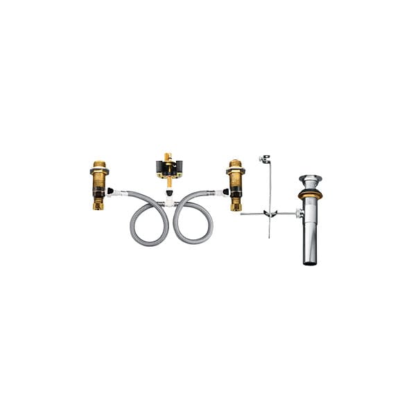 Widespread Valve, Material Brass, Fits Brand Moen, For Use With Moen Wide Spread, For Use With Grainger Item Number 6MPT7, For Use With Mfr. Model Number 8225, Finish Brass, Size 8 In., Connection 1/2 In. MPT, Includes Wide Spread Mounting Valve and Pop Up, Standards ASME A112.18.1/CSA B125.1