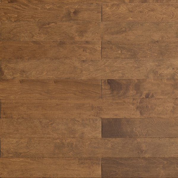 Mohawk Basics hardwood flooring features long-lasting finishes and traditional, rustic hardwood visuals. Cafe Birch is a rich medium golden brown that brings warm style and an elegant flare to any room. Plank has hand beveled edge.