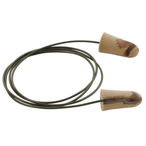 Ear Plugs, Noise Reduction Rating 33 dB, Earplug Shape Bullet, Insertion Method Roll-Down, Reusability Disposable, Cord Options Corded, Earplug Size M, Earplug Material Foam, Earplug Packaging Bulk Box, Unwrapped, Earplug Pair Pack Type Plastic Bag, Band Color Green, Series Camo Plugs(R), Cord Material Plastic, Band Material Plastic, Cord Color Green, Standards ANSI S3.19-1974, Pairs per Package 100, Earplug Color Camouflage, Metal Detectable No, Package Quantity 100