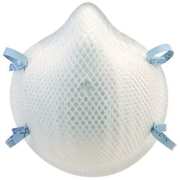Disposable Respirator, Mask Size M, NIOSH Rating N95, ASTM Splash Rating Not Rated, ISO Cleanroom Class Not Rated, Mask Headstrap Type Dual, Non-Adjustable, Mask Shape Molded, Mask Material Dura-Mesh(R), Exhalation Valve No, Package Quantity 2