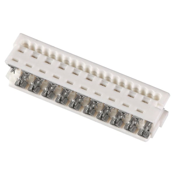Board Connector, 20 Contact(S), 2 Row(S), Female, 0.1 Inch Pitch, Idc Terminal, Guide Slot, White