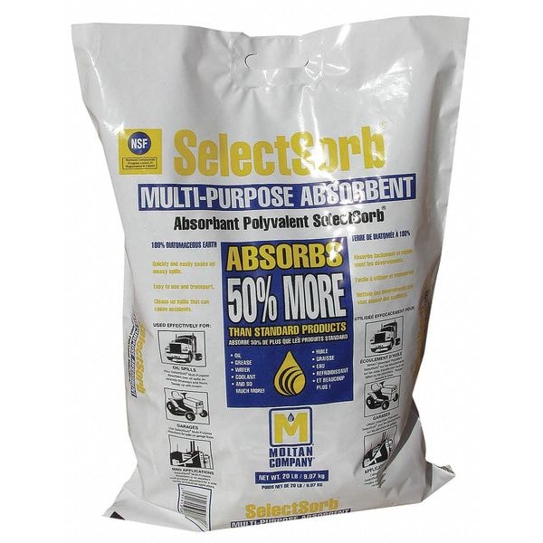 Fluids Absorbed Water, Oil, Grease, Chemicals, Paint, Odors, Container Type Bag, Volume Absorbed per Pkg. 3.4 gal (Water)/4.1 gal (Oil)