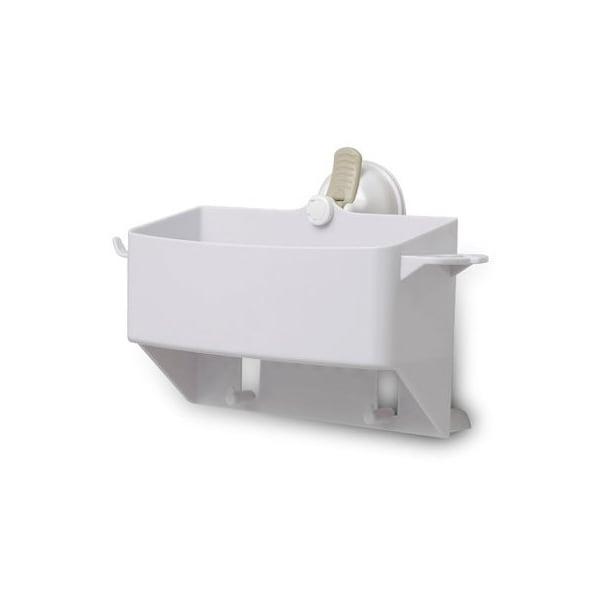 SafeErGrip, White, Tub Organizer, Puts Shampoo, Soap Razors Where They're Most Convenient, Includes Razor Hook, Toothbrush Holder 2 Hooks For Washcloths Or Loofas, Easy To Install, Remove Relocate