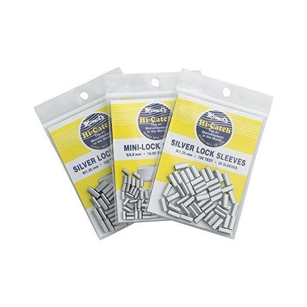 Momoi Diamond Silver Lock Sleeves, Sz E, 300Lb Mono, 50Pk Manufactured using strict quality assurance procedures to produce a high quality, burr free, precise fitting sleeve every time When matched with the proper line diameter they produce a very strong line connection with any manufacturer's line Momoi 90502 50Pk