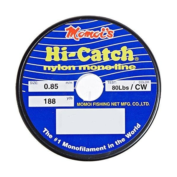 Momoi HiCatch Monofilament Line this nylon line is an extremely high quality monofilament line produced using strict quality controls It exhibits very low memory characteristics and is very soft and flexible while maintaining a high tensile strength to diameter ratio Small diameter lines with tensile strengths result in larger reel capacity when fighting hard charging game fish Momoi 14030