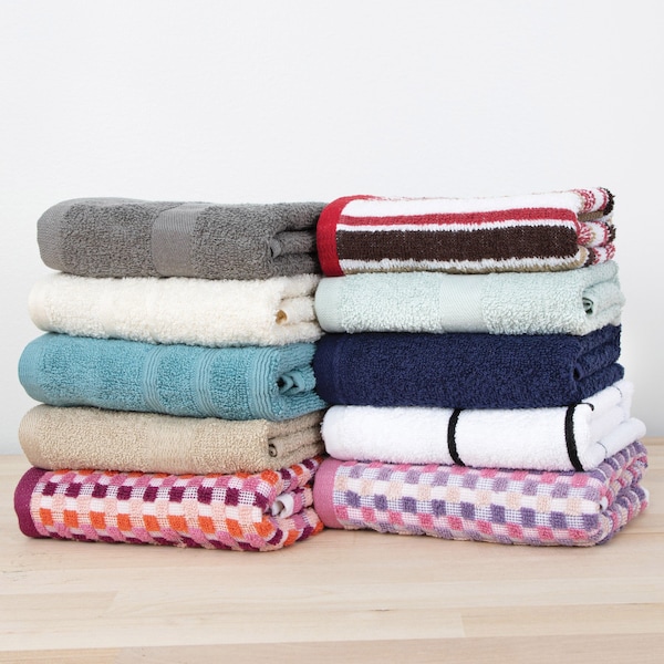 QUALITY: Our Ambassador hand towel assortment includes eight color solid 100% cotton mid-Weight towels with monotone stripes. This collection is stylish, in popular decor colors to match any bathroom and made from soft, absorbent cotton for high comfort and functionality. MULTIPURPOSE: The Ambassador collection of hand towels are perfect for bathrooms, kitchens, and any space where hands may get wet or spills may happen. Mix and match colors and sizes for a stylish look in any room. TWO CONVENIENT SIZES: Made in two handy sizes, 16x28in and 18x30in for hands of all sizes. Use as hand towels, bar mops or big napkins. WHOLESALE BULK CASES: Buy a case of 96 for home, a restaurant, cafe, or event venue. Low minimums make it easy to purchase quality hand towels for any space. MACHINE WASHABLE: Machine wash in cold water, Tumble Dry on a low heat setting