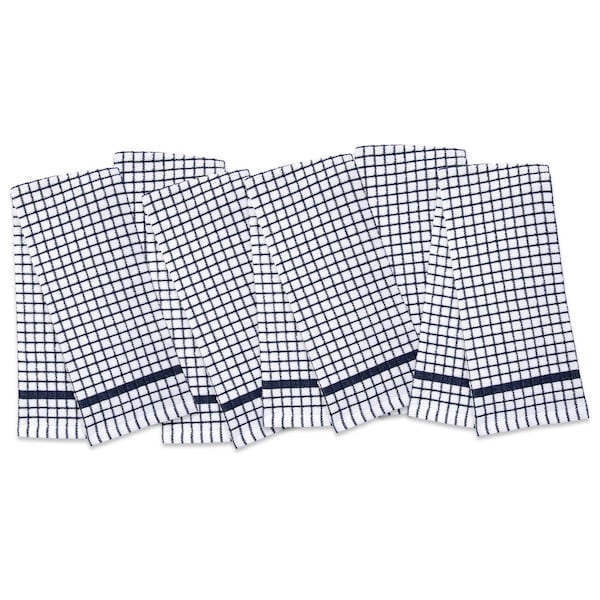 Arkwright offers perfect kitchen towels and dishcloths available by researching, testing, and designing products thoroughly. This kitchen towels set is made from soft 100% ring spun cotton and is super soft, quick drying, durable and highly absorbent. These kitchen hand towels measure 15 x 25 in., making them perfect for cleaning countertops, dishes, glasses, etc. Our kitchen and dishcloth sets feature three white terry towels with color accents and three solid color towels that match a color from the pattern This kitchen towel line boasts of bold checkred pattern across the towel and thick cam borders on both sides, making it more appealing than any other dish towels and dish cloths sets. Available in Four colors: Black Blue Grey Tan FEATURES 6-Pack and a bulk case of 144 Each kitchen towel measures 15 x 25 in