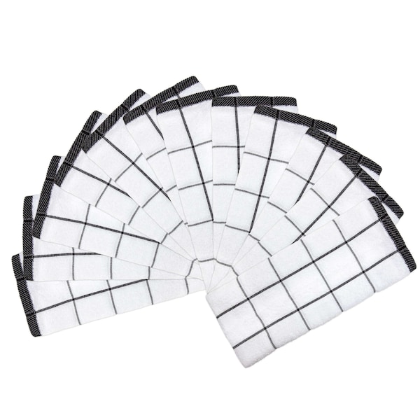 Pack: Bulk case of 144 cotton kitchen towels have a large size 15 x 25 in. and are ideal for frequent use in cooking, cleaning Quality: These dish towels are super absorbent and dry quick. Simple and elegant window pane design will match with any kitchen decor LightWeight : These terry dishcloths are a great alternative to disposable paper towels, and microfiber cloths, as these are more durable and will last longer Multi-purpose: This kitchen towel set is lint free and can be used as napkins, a cleaning cloth, for drying plates, bowls, as a tea towel set etc. Care: These dish cloths can be washed several times without wearing out. Machine Wash regular, Tumble Dry