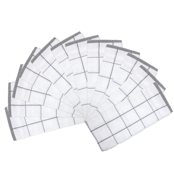 Pack: Bulk case of 144 cotton kitchen towels have a large size 15 x 25 in. and are ideal for frequent use in cooking, cleaning Quality: These dish towels are super absorbent and dry quick. Simple and elegant window pane design will match with any kitchen decor LightWeight : These terry dishcloths are a great alternative to disposable paper towels, and microfiber cloths, as these are more durable and will last longer Multi-purpose: This kitchen towel set is lint free and can be used as napkins, a cleaning cloth, for drying plates, bowls, as a tea towel set etc. Care: These dish cloths can be washed several times without wearing out. Machine Wash regular, Tumble Dry