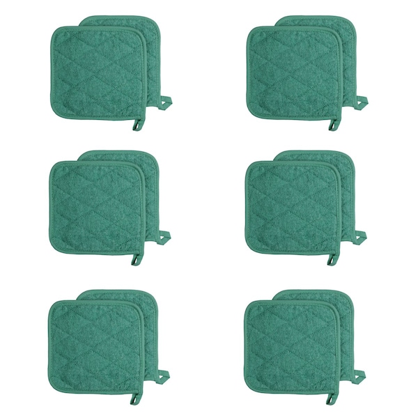 QUALITY: 144 bulk case pack of premium quality pot holder made up of 100% cotton terry-looped, designed to feel soft and quilting allows for easy flexibility in these pot holders. A bulk case of 144 make perfect for large-scale or frequent uses, offer durability and grip. A bulk pack is also more cost efficient. HEAT-RESISTANT: These pot holders will protect your hands from heat when removing dishes from the oven and hot pots from the stove, then rest your dishes on them like hot pads to protect kitchen surfaces. Do not use in a hot oven or over an open flame MULTIPURPOSE: These terry cotton oven mitts pot holders are ideal for hot pots, hot pan holder, microwave splatter guard, spoon rest, jar opener, trivet, and large coaster. Theses pot holders are perfect for business, baking, kitchen and cooking. SIZE: Our pot holders are perfect, large size - 7 x 7 in. with hemmed edges give the cloth strength and durability. It's providing you perfect material with the benefits of heat resistant quality that you expect in your home. MACHINE WASHABLE: These pot holders are machine washable with cold water and tumble dry low Do not bleach. Cotton makes it soft, light Weight and easy to wash and can definitely hold up to multiple washes without thinning out or unraveling