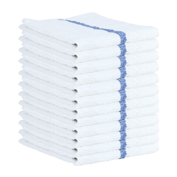100% Cotton QUALITY KITCHEN TOWELS: Arkwright professional-grade restaurant white bar mop towels with color center stripes are made of cotton and are absorbent and quick drying. Kitchen terry towels are heavier than most dish rags out there. QUICK DRYING DISH TOWELS: Our kitchen bar rag towels wick water fast and are quick drying. These are ideal kitchen cleaning towels for spills on countertops, tabletops, bars etc. MULTI-PURPOSE BAR MOPS: These terry bar mop dish cleaning towels are suited for every situation. A heavy-duty tea towel for the home, a dish towel for hotels, a cleanup towel for bars, cleanup cloth for restaurants, etc. They get the job done when drying dishes and glasses. ECONOMICAL CLEANING CLOTHS: The economical pack of 60 kitchen terry bar towels are light on your pocket and heavy on the stains and grime. These terry bar mop cleaning rags are reusable and make a great alternative to disposable paper towels. MACHINE WASHABLE KITCHEN TOWELS: These terry kitchen bar mop cloths are perfectly machine-washable. Do not use harsh chemicals or bleach. Tumble dry regular cycle. These terry bar towels can be washed and reused many times without losing their absorbency