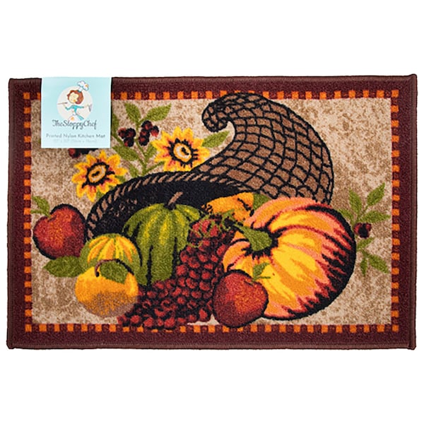 Sloppy Chef Printed Kitchen Area Rug, 20x30, Non-Skid Latex Backing PREMIUM QUALITY: This kitchen rug is made with a non-Skid latex rubber backing for safety. The soft surface is comfortable and easy to work on even with bare feet. LIGHT QUALITY: This nylon kitchen rug is made with 100% Nylon for better stain resistance and durability. It is lightWeight and Durable. MULTI-PURPOSE: Printed nylon kitchen rugs are suitable for any use. Can be used as kitchen rugs or as a area rug, and they have a style that will be a focal piece for any room in your home. GREAT DECORATION: This kitchen rug has a nice look and fits nicely into your kitchen. Perfect for any chef or the person in your home who loves to cook. SIZE & USAGE: The 20in x 30in size is suitable for placement in the bathroom, by the doorway, dining room, along with an entryway in the bedroom or as an area rug anywhere in your home or office. CARE: Wash separately in cold water, gentle cycle, and use a mild detergent