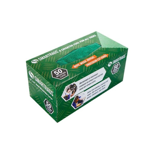 Smartrags microfiber cleaning cloths, 12" x 12", green, 50 rags/box - m950g smartrags are the smarter tool for all tasks. Each dispenser box contains 50 12"x12" microfiber cloths with precision cut seamless edges. Color-codingreduces the threat (and perception) of cross-contamination. Smaller and more compact than regular microfiber cloths, smartrags are ideal for utility carts, corporate supply rooms, automotive shops, and break rooms. Smartrags are less expensive than regular microfiber cloths so are ideally used in high-loss environments: industrial and automotive shops need better lint-free options to wipe away heavy grime and oil. office environments value the compact consumer-friendly packaging. employees are also prone to wipe-and-toss rather than launder cloths. healthcare facilities are hyper sensitive to hospital acquired infections (hais) so cloths are often discarded after one use.
