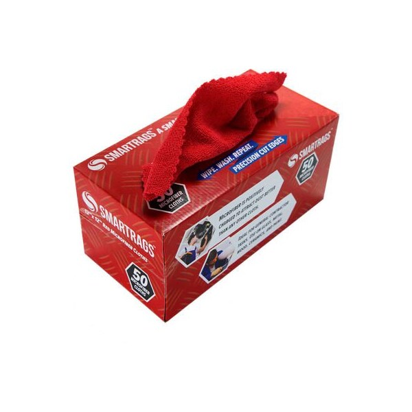 Smartrags microfiber cleaning cloths, 12" x 12", red, 50 rags/box - m950r smartrags are the smarter tool for all tasks. Each dispenser box contains 50 12"x12" microfiber cloths with precision cut seamless edges. Color-codingreduces the threat (and perception) of cross-contamination. Smaller and more compact than regular microfiber cloths, smartrags are ideal for utility carts, corporate supply rooms, automotive shops, and break rooms. Smartrags are less expensive than regular microfiber cloths so are ideally used in high-loss environments: industrial and automotive shops need better lint-free options to wipe away heavy grime and oil. office environments value the compact consumer-friendly packaging. employees are also prone to wipe-and-toss rather than launder cloths. healthcare facilities are hyper sensitive to hospital acquired infections (hais) so cloths are often discarded after one use.