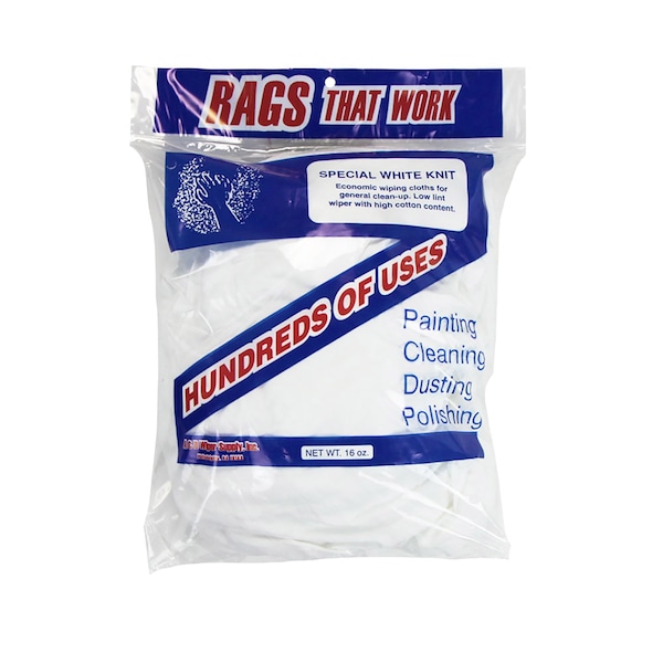 Premium T-shirt Material PREMIUM QUALITY RAGS: Made of 100% premium quality t-shirt material. All Knit t-shirt cleaning rags are made from cotton and poly-cotton material. All around, these are great all-purpose and high-quality, low lint knit wiping rags. Bulk cotton rags provide superior lightweight absorbency. CHOOSE YOUR RAG PACK: A white knit cleaning rag is more cost-efficient than microfiber cleaning cloths. These bulk knit cleaning towels are available in 5lb and 10lb rag boxes for the home or office, and 25lb and 50lb rag boxes for industrial wiping, construction clean up, and remediation. Need more We sell these multipurpose cleaning wipes by the pallet when fulfilled by our warehouse. AN ULTIMATELY VERSITILE CLEANING CLOTH: These Knit cleaning t-shirt rags can be used for general cleaning, paint spills and cleanups, staining and varnishing, polishing and dusting. Bulk absorbent towels are ideal for all purposes. DURABLE CLEANING SUPPLIES: These knit cleaning rags are generated from offcuts during the t-shirt production process. Use them around the home to clean up spills, grease, grime, and oil. Remove dirt from tools, paint from brushes, and to detail cars. These cleaning bulk rags are hearty and will not let you down. MACHINE WASHABLE RAGS: Often used for a cleaning wipe and toss, these knit cleaning rags are machine-washable, dry fast, and remain durable