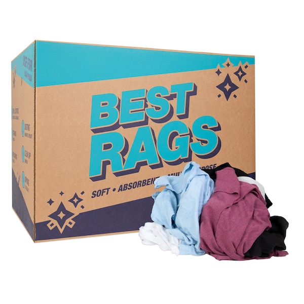 Cotton HAVE YOU WORN THESE T-SHIRT RAGS: Made of recycled quality color t-shirt material. You may have worn these rags in their past life. All t-shirt rags are made from cotton and poly-cotton material. All around, these are great all-purpose and high-quality, low-lint knit wiping rags. Cotton rags provide superior lightweight absorbency. CHOOSE YOUR T-SHIRT RAG PACK: A knit t-shirt rag is more cost-efficient than microfiber cleaning cloths. These cleaning towels are available in 5lb and 10lb rag boxes for the home or office, and 25lb and 50lb rag boxes for industrial wiping, construction clean up, and remediation. Need more We sell these cleaning wipes by the pallet when fulfilled by our warehouse. AN ULTIMATELY VERSITILE CLEANING CLOTH: These cleaning t-shirt rags can be used for general cleaning, paint spills and cleanup, staining and varnishing, polishing and dusting. Absorbent knit rags are ideal for every purpose. DURABLE CLEANING SUPPLIES: These cleaning rags are generated from offcuts during the t-shirt production process. Use them around the home to clean up spills, grease, grime, and oil. Remove dirt from tools, paint from brushes, and to detail cars. These cleaning rags are hearty and will not let you down. MACHINE WASHABLE RAGS: T-shirt cleaning rags are machine-washable, dry fast, and remain durable
