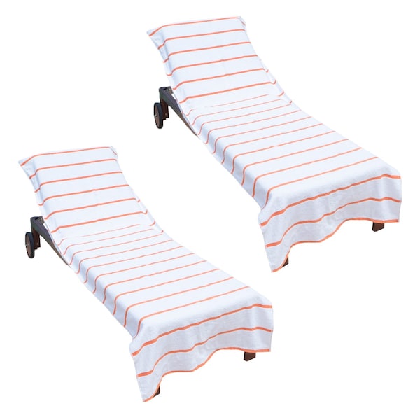 STYLISH OUTDOOR CHAIR COVERS: These Las Rayas pool chair covers are made with soft 100% premium cotton interwoven with polyester flat woven stripes for a unique look at the beach or pool. Our terry towel pool chair covers match our Las Rayas beach towels.