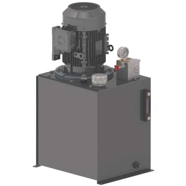 Hydraulic Power Unit, Circuit Design Single or Double Acting, Power Source - Power Units AC Power, 5 hp HP, RPM 1,800 RPM, 208-230/460V AC, 50/60 Hz Hertz, Number of Phases 3, Full Load Amps 13.7-12.4/6.2 A, Pump Stage 1, Max. Pressure 1,550 psi, Nominal Flow 4.4 gpm, Reservoir Capacity 15 gal, Overall Length 20 in, Overall Width 17 in, Overall Height 35 in
