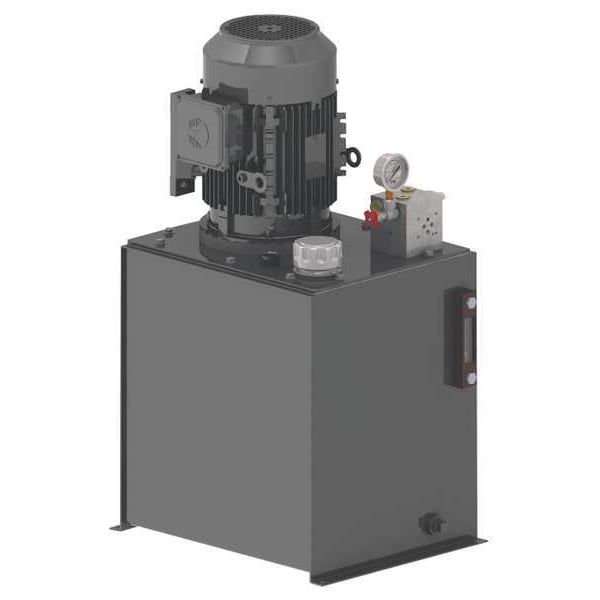 Hydraulic Power Unit, Circuit Design Single or Double Acting, Power Source - Power Units AC Power, 5 hp HP, RPM 1,800 RPM, 208-230/460V AC, 50/60 Hz Hertz, Number of Phases 3, Full Load Amps 13.7-12.4/6.2 A, Pump Stage 1, Max. Pressure 2,000 psi, Nominal Flow 3.7 gpm, Reservoir Capacity 15 gal, Overall Length 20 in, Overall Width 17 in, Overall Height 35 in