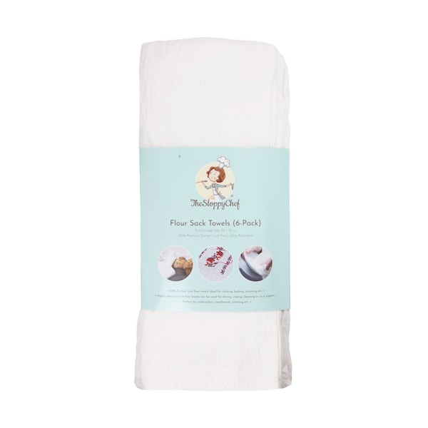 VALUE PACK: Set of 6 white flour sack towels for all your household needs for today, tomorrow; and the future! They are large in size (36 x 36 in.) thus making them perfect for cleaning countertops, kitchens, dishes, glasses, etc.