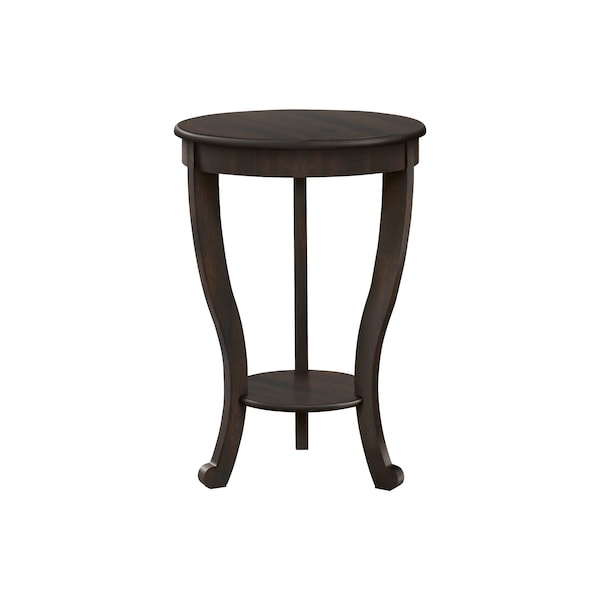 This elegant 26 inch high, 2 tier accent table is the perfect addition to a living room or bedroom. With a simple traditional design, this round side table offers enough surface space to place a small lamp and decorative object, with a bottom shelf as an additional storage option. Finished is a rich dark brown walnut veneer this space saving end table offers a practical solution whether you place it next to an armchair, a sofa, or as a chic nightstand in your bedroom. Durably designed to easily place it in any room, this versatile table includes full illustrated instructions for easy assembly.