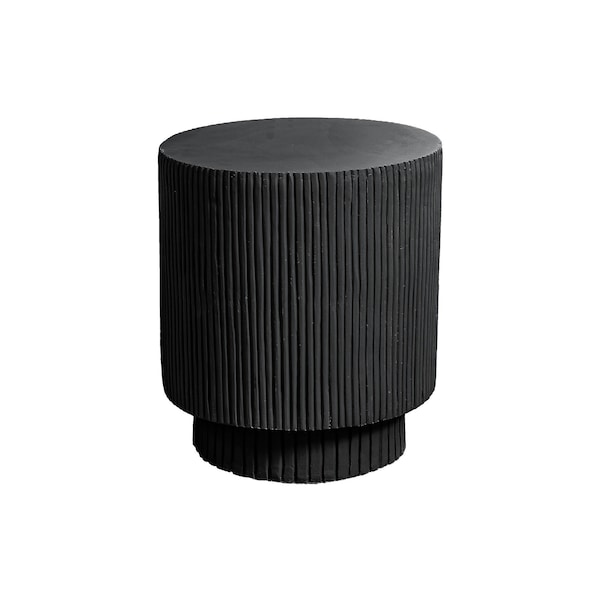 A perfect blend of style and functionality, transform your indoor or outdoor home decor with this 25"h accent table to seamlessly enhance any space in your home or outdoor area. With its fashionable style and contemporary black finish in a ridged design, this versatile table is a stunning addition to your living room, bedroom, or patio area, effortlessly rejuvenating any corner into a showcase of modern design. This durably designed structure is created using weather-resistant magnesium oxide that ensures longevity and protection from the elements, with an easy to clean top for those accidental spills. Thanks to its space saving design, this round side table neatly fits into tight spaces, providing the practicality you need without compromising on style. This table is ready to use right out of the box whether as an end table next to a sofa, a stylish side table near your porch chair, or as a chic nightstand. Experience the perfect fusion of form and function with this ridged indoor/outdoor accent table_x0014_ because your home deserves nothing less than contemporary elegance!