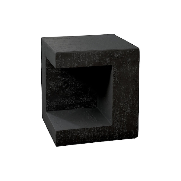 Transform your space with this modern, 25"h black accent table and elevate your home decor style. This versatile table is perfect for adding a touch of modern elegance to your bedroom, living room, or outdoor settings. This sophisticated, cube shaped side table with a cut-out design providing a bottom shelf for storage or display, features a durable and easy to clean top that withstands the rigors of indoor or outdoor use, ensuring it remains a staple in your home for years to come. Designed with practicality in mind with a space saving design, this table is created using weather-resistant magnesium oxide in a concrete look, making it perfect to setup on your contemporary patio as a chic side table, in a modern living room as an end table or in your bedroom as a unique nightstand. No assembly is needed, making it a breeze to simply place in your favorite space for an instant decorative lift.Upgrade your indoor/outdoor decor with this outstanding, concrete-look square accent table with its fashionable style that seamlessly blends with contemporary aesthetics, making it an ideal choice for any space.